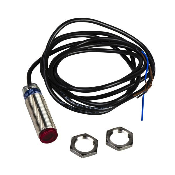 XUBT-Optoelektronischer Sensor, Design 18mm, Reflexions-Lichtschranke polarisiert zur Erfassung von transpararenten Objekten, Schaltabstand Sn 1,4m, Spannungsversorgung 12-24V DC, 2m Anschlussleitung.