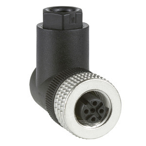 Dieser Stecker hat eine gebogene 4-polige M12-Buchse und eine Schraubklemme mit Metallklemmringen. Er ist für kritische Installationen dank des hochrobusten M12-Metallringsteckers ausgelegt.