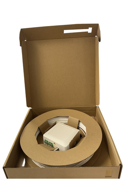 GF-TA mini, 80x80 mm, vorkonfektioniert mit 4xLC/APC und 20m Microkabel 4 Fasern weiß, B2ca , flammhemmed UL 94 V-0, Montage AP und UP auf Dose oder auf Hutschiene im Verteiler, Einführung des Kabels von allen Seiten