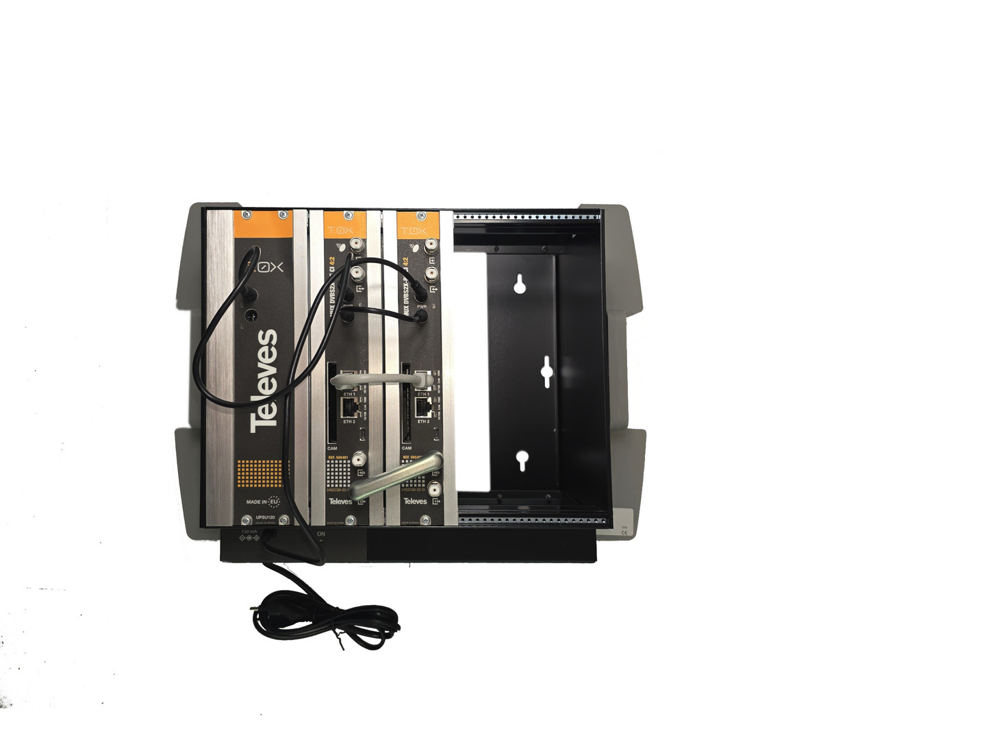 QAM-Kopfstelle fix und fertig vormontiert und vorprogrammiert mit Twin-Remux-Umsetzern, bestehend aus Gehäuse (UGH4), Netzteil (UPSU120) und 2xTWIN-Remux-Umsetzer (U4Q2CQA-S2-CI). Die Umsetzer erzeugen 4 COFDM- oder QAM-Multiplexe aus den Diensten von bis zu 8 verschiedenen TV-Sat-Transpondern aus 2 unterschiedlicher Satellitenpolaritäten oder 2 unabhängigen Sat-Eingängen. Die Auswahl der gewünschten Ausgangsmodulation erfolgt über eine eingebettete Weboberfläche. Diese ermöglicht die Konfiguration der verschiedenen Funktionalitäten der Kopfstelle, zusätzlich zur Auswahl der TV-Dienste: Auswahl eines Master-moduls in der Kopfstelle, automatische Erkennung der Module, die mit dem Master verbunden sind, Klon-Funktion zur replikation von Konfigurationen, Kontrollanzeigen usw..