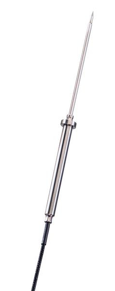 Der Lebensmittelfühler ist (mit dem passenden Messgerät) ideal zur Messung von Lebensmitteltemperaturen. Der Temperaturfühler besteht aus hygienischem Edelstahl, lässt sich leicht abwaschen und ist wassergeschützt nach IP65. - 1 x wasserdichter Edelstahl- Lebensmittelfühler (TE Typ K) mit fest angeschlossenem Kabel (Kabellänge 1,1 m).