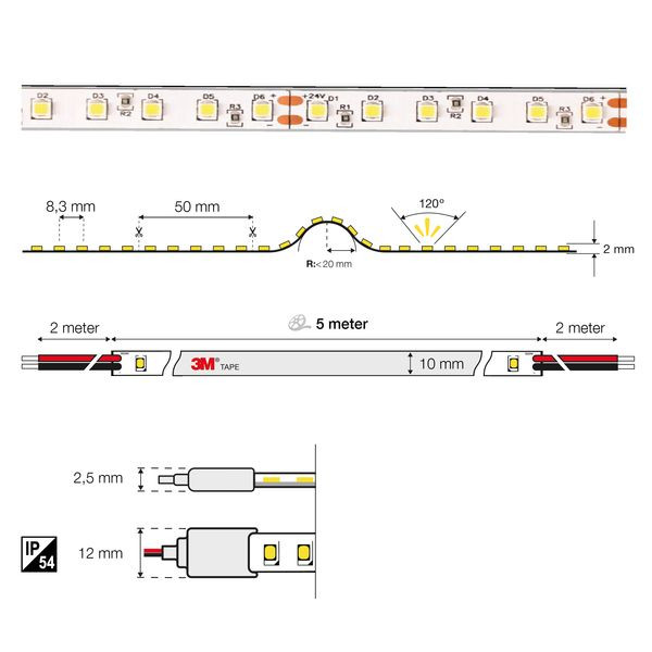 | Kurzbeschreibung | Vollspektrum, CRI 97. 120 LEDs/M für gleichmäßiges Licht. Einfache Installation mit 3M-Klebeband. Kühlprofil empfohlen für Langlebigkeit. |