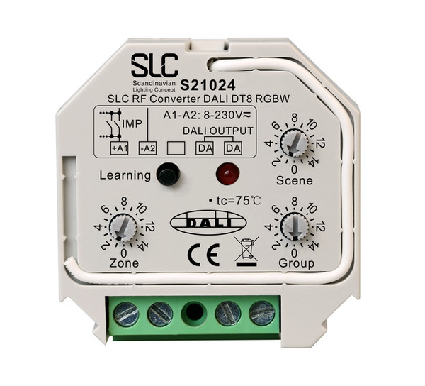 ? RF zu DALI Gruppen- und Szenensteuerung ? Empfängt RF-Signal und gibt DALI-Signal an DALI-Leitung aus ? Entspricht dem DALI-Standardprotokoll I EC 62386-102, IEC 62386-207 und ist kompatibel mit DALI-Produkten von anderen internationalen Organisationen ? RGB/RGBW Version: DT8 für Farbwechsel, Farbtyp: RGBW, kompatibel mit universellen DALI-Mastern, die DT8-Befehle unterstützen ? DALI-Bus-gespeist ? Es kann mit RF-Fernbedienungen gesteuert werden und ist mit einer Vielzahl von RF-Fernbedienungen kompatibel ? Es kann mit einem Drehschalter auf eine beliebige Zone der gekoppelten RF-Fern-bedienung eingestellt werden ? Kann über einen universellen 8V-230V-Eingang mit PUSH-Schalter gesteuert werden ? Ermöglicht die Steuerung von 1 DALI-Gruppe von Geräten ? Ermöglicht die Steuerung aller Geräte auf der DALI-Linie über Broadcast ? Die Anzahl der zu steuernden DALI-Szenen hängt von der gekoppelten RF-Fernbe-dienung ab ? Ermöglicht die Einstellung der Anfangszahl (0-15) der DALI-Gruppen, die über einen Drehschalter gesteuert werden sollen ? Ermöglicht die Einstellung der Anfangszahl (0-15) der DALI-Szenen, die mit einem Drehschalter gesteuert werden sollen ? Jede DALI-Linie kann mehrere Steuergeräte für mehrere Steuerpunkte installieren