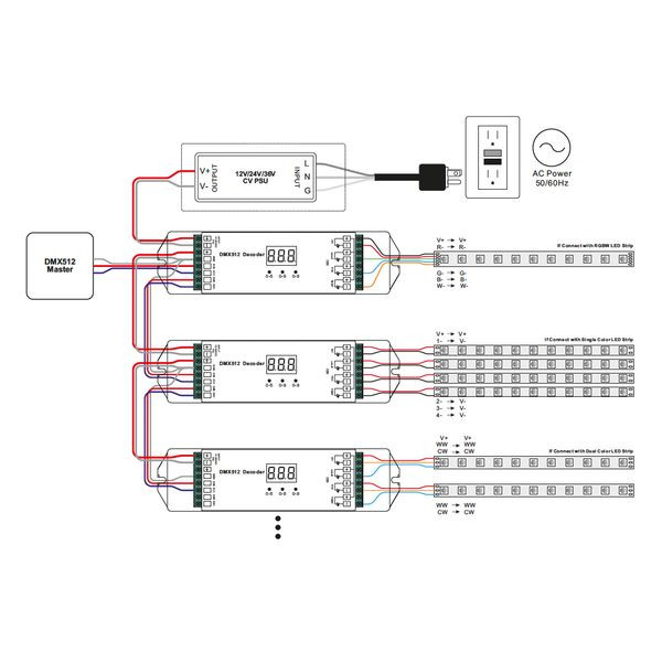 DMX512-konforme Schnittstelle für flexible DMX-Adressierung und digitale Anzeige der Adresse über numerisches Display.