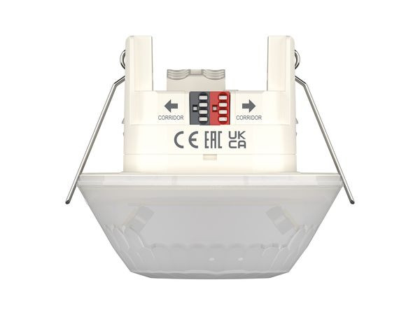 Präsenzmelder (PIR) für die DE-Deckenmontage im Innenbereich, Erfassungsbereich 28 x 5 m bei 3 m Montagehöhe für Korridore, Für KNX-Bussystem, 2 Kanäle Licht und 2 Kanäle Präsenz für HKL-Steuerung, 2 Kanäle Licht mit 1 Lichtmessung, Automatische Beleuchtungssteuerung mit Konstantlichtregelung oder Schaltbetrieb, Dimmbare Beleuchtung im Schaltbetrieb mit und ohne Tageslichteinfluss, Integrierter Temperatursensor, Tag / Nachtumschaltung über Telegramm, Stand-by Funktionalität (Orientierungslicht), 3 Logikkanäle (UND/ODER/XOR), KNX Data-Secure, Betrieb als Voll- oder Halbautomat möglich, Manuelle Übersteuerung über externe KNX-Taster möglich, Eine gerichtete Helligkeitsmessung (Mischlichtmessung), Einfacher Abgleich der Helligkeitsmessung, Kurzzeit-Präsenz, Wählbare Regelgeschwindigkeit, Teach-in Funktion, Szenenfunktionalität, Sperrfunktionen, Einschaltverzögerung und Nachlaufzeit Präsenz einstellbar, Erweiterung des Erfassungsbereiches durch Parallelschaltung, Erfassungsempfindlichkeit umstellbar für die Anwendung im Außenbereich, Testbetrieb zur Überprüfung von Funktion und Erfassungsbereich, Einstellung per ETS Software (voller Funktionsumfang), Einstellung per Fernbedienung/APP oder APP (BLE)