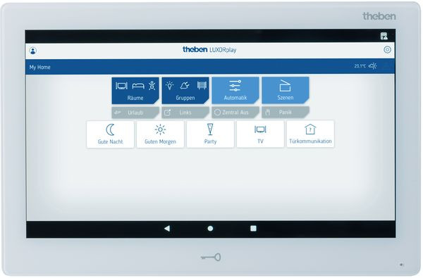 Steuerzentrale für LUXORliving und Innenstation für Video-/Sprechanlagen, Auch geeignet für das Funksystem LUXORliving SMARTstart, Hochauflösendes 1024 x 600 Pixel 10“ HD LCD, Farbdisplay mit Touchscreen, Zur Kombination mit Video-/Sprechanlagen von Metzler und Hikvision, Integriertes Mikrofon und Lautsprecher, Integrierte LUXORplay-App, Kommunikation über WLAN oder Ethernet, Stromversorgung über PoE, 12 V über separates Netzteil ebenso möglich, Geringe Abmessungen von nur 256 x 167 x 28 mm