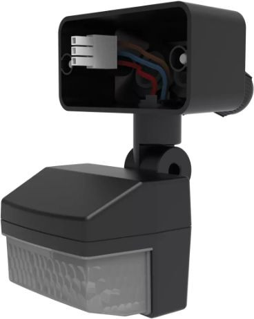 Bewegungsmeldermodul, schwarz, Erfassungswinkel 180° bei 12 m Reichweite, zusätzlicher Schaltausgang Licht, Sensor horizontal und nach unten/hinten drehbar, inklusive Dämmerungsschalterfunktion