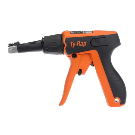 Ty-Rap®, ergonomisches Handwerkzeug für Kunststoff-Kabelbinder, mit um 360° verstellbarer Spitze, einstellbarer Anzugspannung und automatischer Abschneidefunktion.