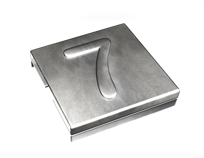 Kurzbeschreibung Ty-Met Mark.zeichen 316 Edelstahl-Mark.sys.,Ziffer 7 9,2x8x2,5 mm, Dicke 0,25mm
