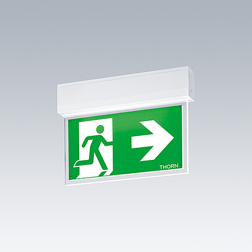 Ultra schlanke LED-Fluchtwegeleuchte zur Anbau-, Wand- oder Deckenmontage, Deckeneinbaumontage möglich mit optionalem Rahmen zum Deckeneinbau, Leuchte mit Einzelbatterieversorgung für 3 h Notlichtbetrieb in Dauer- oder Bereitschaftsschaltung, automatischer Test (Autotest) durch die Leuchte, Anzeige des Leuchtenstatus über Status-LED, Bereitschafts- und Dauerschaltung möglich, Anzeige des Leuchtenstatus über Status-LED, Gehäuse aus Polycarbonat (PC), weiß, einfache Leuchtenmontage, schnell einbaubare Anschlussklemme, Durchgangsverdrahtung möglich mit bis zu 2,5 mm², inklusive montierbare ISO 7010-Richtungszeichen (links, rechts, aufwärts, abwärts und leer), sichtbar aus einer Maximaldistanz von 23 m, Montage der Richtungszeichen mit unauffälligem Stift, keinerlei Wartung dank LED-Technologie, Betriebslebensdauer von 50.000 Std. bei konstantem Lichtstrom, einheitliche Rückbeleuchtung der Piktogramme, Leuchtdichte > 500 cd/m² in der Weißregion, Stromversorgung: 220/240 V AC, Leuchten Leistung: 7,5 W, Schutzgrad: IP43, Schutzklasse: Schutzklasse II, Schlagfestigkeit: Schlagfestigkeit: IK03, Abmessungen: 265 x 37 x 191 mm, Gewicht: 0,98 kg Autarke Notlichtleuchten benötigen langlebige Akkus. Thorn Akkus sind robust und verfügen über eine 3-Jahresgarantie. (Gültig gemäß den Bestimmungen der ebenfalls gültigen Herstellergarantie auf Thorn-Produkte und in dem darin festgelegten Umfang, die Herstellergarantie ist einsehbar unter http://www.thornlighting.com/en/products/5-year-guarantee/5-year-warranty/terms-of-guarantee_en.pdf. Die Akkugarantie ist ungültig, wenn der Akku erst drei (3) Monate nach Lieferung EXW (Incoterms 2010) installiert wird.)