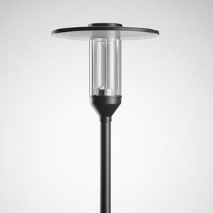 Dekorative LED-Laterne für Mastaufsatzmontage. Mit intelligentem Label zum schnellen Aufrufen von Leuchten-Informationen mittels QR-Code. Mastzopf Ø 76 mm. Mittels separat zu bestellender Reduzierstücke auch zur Montage an Masten mit Zopf Ø 60 mm geeignet. Passender Mast auf Anfrage. Lichtpunkthöhe max. 8000 mm. Optisches System in Multi-Lens-Technologie (MLT) ausgeführt. Leuchtenoptik bestehend aus hocheffizienten, UV- und temperaturbeständigen Linsensystemen. Mit asymmetrisch breit strahlender Lichtstärkeverteilung. Zur Beleuchtung von Straßen nach P-Beleuchtungsklassen. Zur flexiblen Anpassung an kundenspezifische Beleuchtungsaufgaben stehen weitere Abstrahlcharakteristiken zur Verfügung. Der nachträgliche Einbau einer rückseitigen / seitlichen Abschirmung ist als separat zu bestellendes Zubehör möglich. Leuchtenlichtstrom und Lichtfarbe fest eingestellt, mit Lichtstromkonstanthaltung am Ende der Lebensdauer (CLO). LED-System bestehend aus 4 LED-Modulen. Bemessungslichtstrom 3800 lm, Bemessungsleistung 32 W, maximale Leuchten-Lichtausbeute 119 lm/W. Lichtfarbe warmweiß, ähnlichste Farbtemperatur (CCT) 3000 K, Auf Anfrage auch in Tunable White Ausführung (2200 K - 4000 K) erhältlich. allgemeiner Farbwiedergabeindex (CRI) Ra > 70. Farborttoleranz (initial MacAdam) = 5 SDCM. Weitere LED-Lichtfarben auf Anfrage verfügbar. Mittlere Bemessungslebensdauer LCLO (tq 25 °C) = 100.000 h. Die Lichtquelle ist entsprechend der Ökodesign-Anforderungen (VO (EU) 2019/2020) austauschbar. Ausführungen mit 3-Stufen-Schalter zur Einstellung unterschiedlicher Lichtströme auf Anfrage. Flimmern: Pst LM = 1,0 bei Volllast. Leuchtenkörper aus Aluminium-Druckguss, Leuchtendach aus korrosionsbeständigem Aluminium, hochwetterfest pulverbeschichtet. Farbe Leuchtenkörper und Leuchtendach außen tiefschwarz, ähnlich RAL 9005. Leuchtendach innen weiß pulverbeschichtet. Seewetter geeignete Beschichtung auf Anfrage. Abschlusszylinder aus hochschlagzähem PMMA, klar. Leuchtenabdeckung in selbstarretierende Service-Position hochschiebbar. Mast auf Anfrage erhältlich. Schutzklasse (EN 61140): II, Schutzart (DIN EN 60529): IP23, Schutzart Lampenraum: IP65. Stoßfestigkeitsgrad nach IEC 62262: IK04. Zulässige Umgebungstemperatur (ta): 25 °C Windangriffsfläche Fw = 0,470 m2. Gewicht: 9,9 kg. Werkseitig angeschlossene Anschlussleitung. Länge der Anschlussleitung: 6,0 m. Mit elektronischem Betriebsgerät, schaltbar. Das Betriebsgerät ist entsprechend der Ökodesign-Anforderungen (VO (EU) 2019/2020) austauschbar. Mit angeschlossener, 6000 mm langer Zuleitung. Mit isoliertem Stützpunkt für den Erdleiter. Elektroblock mit allen elektrischen Komponenten werkzeuglos austauschbar. Stoßspannungsfestigkeit Differential Mode / Common Mode: 6 kV / 10 kV. Das Produkt erfüllt die grundlegenden Anforderungen der anwendbaren EU-Richtlinien und des Produktsicherheitsgesetzes und trägt die CE-Kennzeichnung. Zusätzlich ist die Leuchte durch eine unabhängige Prüfstelle ENEC-zertifiziert. Leuchte 10 Jahre, Ersatzteile (LED-Modul, Betriebsgerät, optisches System) 15 Jahre nach Rechnungsdatum unter Vorbehalt vertretbarer Änderungen, die dem Fortschritt dienen, verfügbar.