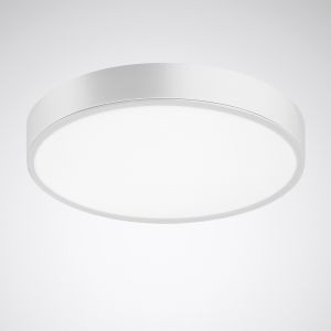 Rundes LED-Anbau-Downlight, Aufbauhöhe 65 mm. Geeignet zur Anwendung in HACCP, IFS und/oder BRC Global Standard Food zertifizierten Unternehmen. Für die Wand- und Deckenmontage. Mit Primärreflektor und hocheffizienter Mikroprismatik CDP. Mit symmetrisch breit strahlender Lichtstärkeverteilung. Ausstrahlungswinkel 91°. UGR-Einstufung nach Tabellenverfahren (EN 12464-1) mit Reflexionswerten 80/60/30. Harmonische Lichtwirkung durch gleichmäßig ausgeleuchteten Lichtaustritt. Leuchtenlichtstrom und Lichtfarbe fest eingestellt. Bemessungslichtstrom 3800 lm, Bemessungsleistung 29 W, maximale Leuchten-Lichtausbeute 131 lm/W. Lichtfarbe neutralweiß, ähnlichste Farbtemperatur (CCT) 4000 K, allgemeiner Farbwiedergabeindex (CRI) Ra > 80. Farborttoleranz (initial MacAdam) = 3 SDCM. Mittlere Bemessungslebensdauer L80 (tq 25 °C) = 70.000 h. Die Lichtquelle ist entsprechend der Ökodesign-Anforderungen (VO (EU) 2019/2020) austauschbar. Flimmern: Pst LM = 1,0 bei Volllast. Stroboskop-Effekt: SVM = 0,4 bei Volllast. Leuchtenkörper aus Aluminiumdruckguss. Oberfläche weiß beschichtet (ähnlich RAL 9016). Außenmaße Deckenring Ø 445 mm, Leuchtenhöhe 65 mm. Schutzklasse (EN 61140): I, Schutzart (DIN EN 60529): IP40, Stoßfestigkeitsgrad nach IEC 62262: IK06, Prüftemperatur Glühdrahttest gemäß IEC 60695-2-11: 650 °C. Zulässige Umgebungstemperatur (ta): -20 °C bis 25 °C. Gewicht: 4,6 kg. Mit Anschlussklemme bis 2,5 mm, Zugentlastung und Netzweiterleitung. Mit elektronischem Betriebsgerät, digital dimmbar (DALI). Betriebsgerät gemäß DALI-2-Standard (EN 62386). Leuchte mittels Tastfunktion über DALI-Steuerklemmen schalt- und dimmbar (Touch DIM). Das Betriebsgerät ist entsprechend der Ökodesign-Anforderungen (VO (EU) 2019/2020) austauschbar. Die Leuchte ist Monitoring ready (MOR) und liefert Leuchtendaten zur Überwachung oder vorausschauenden Wartung. Sie ist damit kompatibel zu den TRILUX Monitoring Services. Das Produkt erfüllt die grundlegenden Anforderungen der anwendbaren EU-Richtlinien und des Produktsicherheitsgesetzes und trägt die CE-Kennzeichnung. Zusätzlich ist die Leuchte durch eine unabhängige Prüfstelle ENEC-zertifiziert. Leuchte 10 Jahre, Ersatzteile (LED-Modul, Betriebsgerät, optisches System) 15 Jahre nach Rechnungsdatum unter Vorbehalt vertretbarer Änderungen, die dem Fortschritt dienen, verfügbar.