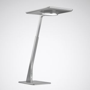 Innovative Tischleuchte mit direktem Lichtanteil für individuelle Arbeitsplatzausleuchtung und indirektem Lichtanteil für allgemeine Raumausleuchtung. Mit integriertem Lichtmanagement zur synchronen tages- und jahreszeitabhängigen Steuerung der Lichtfarbe (Circadian-Steuerung) beider Lichtaustrittsebenen. Die Bedienung der Beleuchtungsfunktionen erfolgt manuell durch 3 Bedienelemente sowie mittels Smartphone-App. Mit HF-Präsenzsensor, HCL-Steuerung und Smart-Single-Ausstattung. Die Leuchte verfügt über einen integrierten Tageslicht- und HF-Präsenzsensor mit Bewegungsrichtungserkennung. Mit integriertem Lichtmanagement zur synchronen tages- und jahreszeitabhängigen Steuerung der Lichtfarbe (Circadian-Steuerung) beider Lichtaustrittsebenen. Die Kommunikation zwischen Leuchte und Smartphone erfolgt mittels Bluetooth Low Energy v 5.0. Besonders geeignet für die Ausstattung moderner Büroumgebungen, speziell in Open Space Anwendungen und offenen Kommunikationszonen als Tischleuchte für alle Arten von festen und höhenverstellbaren Schreib-, Besprechungs- und Arbeitstischen. Für die anforderungsorientierte, den Arbeitsschutzbestimmungen entsprechende Beleuchtung auch im Bereich der Home Office Anwendungen. Auch geeignet für Arbeitsbereiche mit geringer Tageslichtversorgung. Triple Glare Control System (TGCS®) für einen blendungsreduzierten, symmetrisch strahlenden Indirektanteil mit begrenztem Ausstrahlwinkel. Mit klarer, hochkratzfester Acryl-Abschlußscheibe. Mit symmetrisch begrenzt breit strahlender Lichtstärkeverteilung. Blendungsbewertung nach UGR-Einstufung (EN 12464-1) < 19. Mit Tunable White Technologie zur Steuerung der Lichtfarbe mittels separatem Steuersystem (DT8). Bemessungslichtstrom 5580 lm, Bemessungsleistung 52 W, maximale Leuchten-Lichtausbeute 107 lm/W. Aufteilung des Leuchten-Lichtstroms Indirekt-/Direktanteil 90% / 10 %. Lichtfarbe Tunable White (warmweiß - tageslichtweiß), ähnlichste Farbtemperatur (CCT) Tunable White (2700 K - 6000 K), allgemeiner Farbwiedergabeindex (CRI) Ra > 80. Farborttoleranz (initial MacAdam) = 3 SDCM. Mittlere Bemessungslebensdauer L80 (tq 25 °C) = 50.000 h. Flimmern: Pst LM = 1,0 bei Volllast. Stroboskop-Effekt: SVM = 0,4 bei Volllast. Leuchtenkörper aus Aluminium-Druckguss. Oberfläche silbergrau beschichtet (ähnlich RAL 9006). Bedienelemente verchromt. Maße des Leuchtenkopfes (L x B x H) 320 mm x 240 mm, Maße Leuchtenfuß 240 mm x 180 mm, Leuchtenhöhe (stufenlos einstellbar) 500 mm - 650 mm. Schutzklasse (EN 61140): II, Schutzart (DIN EN 60529): IP20, Stoßfestigkeitsgrad nach IEC 62262: IK02, Prüftemperatur Glühdrahttest gemäß IEC 60695-2-11: 650 °C. Zulässige Umgebungstemperatur (ta): 25 °C Gewicht: 4,7 kg. Steckernetzteil mit Anschlussleitung (3000 mm). Mit Euro-Anschluss-Stecker (Typ C, EN 50075). Mit elektronischem Betriebsgerät, dimmbar (integriert) Das Betriebsgerät ist entsprechend der Ökodesign-Anforderungen (VO (EU) 2019/2020) austauschbar. Mit USB-Anschlussbuchse im Leuchtenfuß zum Aufladen von mobilen Kommunikationsgeräten (4,9 V / 1 A). Das Produkt erfüllt die grundlegenden Anforderungen der anwendbaren EU-Richtlinien und des Produktsicherheitsgesetzes und trägt die CE-Kennzeichnung. Zusätzlich ist die Leuchte durch eine unabhängige Prüfstelle ENEC-zertifiziert. Leuchte 10 Jahre, Ersatzteil Betriebsgerät 15 Jahre nach Rechnungsdatum unter Vorbehalt vertretbarer Änderungen, die dem Fortschritt dienen, verfügbar. Ersatzteile LED-Modul und optisches System sind bauartbedingt nicht verfügbar.