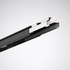 Tragprofil für E-Line 7651 Lichtband-Anwendungen. Zur vereinfachten Montage ist eine vormontierte Lichtbandkupplung zur Verbindung mit einem weiteren Tragprofil im Lieferumfang enthalten. Länge des Tragprofils: 4425 mm. Mit 7-Leiter Durchgangsverdrahtung zur Aufteilung der Schaltkreise sowie zusätzlicher 7-Leiter Duchgangsverdrahtung zur Unterstützung von Zusatzandwendungen im Bereich Notlicht oder Lichtmanagement. Mit 3 Trennstecker-Oberteile zur werkzeuglosen, elektrischen Verbindung der Geräteträger in jeweils 1500 mm Abstand. Mit zwei 7-poligen Buchsen-Stecker-Paaren zum elektrischen Schnellanschluss sowie berührungssicherem Abschluss der Leitungsenden. Die wärmebeständige Durchgangsverdrahtung ist mit allen notwendigen Komponenten werksseitig komplett ausgeführt. Alle Verbindungen sind als Schnellanschluss verpolungssicher ausgeführt. Durch eine obere Ausbrechöffnung (M20/PG13,5) kann die Einspeisung ohne Zubehör erfolgen. Der Tragprofilkörper besteht aus feuerverzinktem Stahlblech. Oberfläche schwarz beschichtet.