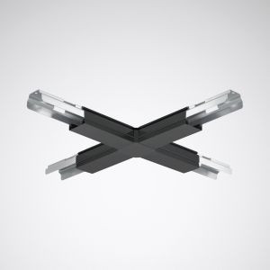 Verbinder für X-förmige Lichtbandanwendungen. Anschlussstecker und -buchsen im Lieferumfang enthalten (8/8). Gerätekörper aus Stahlblech, Abdeckung aus PVC. Oberfläche schwarz beschichtet, Farbe schwarz (ähnlich RAL 9005). Maße (L x B): 659 mm x 659 mm. Mit Einspeisungsmöglichkeit von oben.