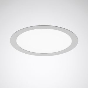 Rundes Einbau-Downlight. Werkzeugloser Deckeneinbau durch Schnellmontagefedern. Deckenausschnitt Ø 284 mm, Einbautiefe 30 mm. Mit opaler PMMA-Abdeckscheibe. Mit lambertscher Lichtstärkeverteilung. Ausstrahlungswinkel 108°. Leuchtenlichtstrom und Lichtfarbe fest eingestellt. Bemessungslichtstrom 2750 lm, Bemessungsleistung 30 W, maximale Leuchten-Lichtausbeute 92 lm/W. Lichtfarbe neutralweiß, ähnlichste Farbtemperatur (CCT) 4000 K, allgemeiner Farbwiedergabeindex (CRI) Ra > 80. Farborttoleranz (initial MacAdam) = 4 SDCM. Mittlere Bemessungslebensdauer L80 (tq 25 °C) = 50.000 h. Flimmern: Pst LM = 1,0 bei Volllast. Stroboskop-Effekt: SVM = 0,4 bei Volllast. Leuchtenkörper aus Aluminiumdruckguss. Deckenring weiß pulverbeschichtet (ähnlich RAL 9016). Außenmaße Deckenring Ø 300 mm, Leuchtenhöhe 30 mm. Schutzklasse (EN 61140): II, Schutzart (DIN EN 60529): IP20, Schutzart raumseitig: IP54, Stoßfestigkeitsgrad nach IEC 62262: IK03, Prüftemperatur Glühdrahttest gemäß IEC 60695-2-11: 650 °C. Zulässige Umgebungstemperatur (ta): -20 °C bis 25 °C. Gewicht: 0,9 kg. Mit externem Betriebsgerät, schaltbar. Das Betriebsgerät ist entsprechend der Ökodesign-Anforderungen (VO (EU) 2019/2020) austauschbar. Das Produkt erfüllt die grundlegenden Anforderungen der anwendbaren EU-Richtlinien und des Produktsicherheitsgesetzes und trägt die CE-Kennzeichnung. Zusätzlich ist die Leuchte durch eine unabhängige Prüfstelle ENEC-zertifiziert.