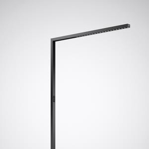 Standleuchte mit direktem und indirektem Lichtstromanteil. Die Bedienung erfolgt über ein im Standprofil flächenbündig eingelassenes Bedienfeld. Mit integriertem Bewegungs- und Tageslichtsensor. Nach 15 Minuten ohne Bewegungserkennung wird die Leuchte ausgeschaltet. Der Tageslichtsensor ermöglicht bei Aktivierung ein konstantes Helligkeitsniveau im Umfeld der Leuchte. Der Helligkeits-Referenzwert kann mittels Bedienfeld verändert und abgespeichert werden. Ein Drehschalter ermöglicht die Einstellung und Kombination der Lichtmanagement-Betriebsarten (Bewegungs-Sensor Ein/Aus, Tageslichtsensor Ein/Aus). Die Lieferung der Leuchte erfolgt zum Schutz der Einzelkomponenten in 3 Packstücken. Mit symmetrisch begrenzt breit strahlender Lichtstärkeverteilung. Blendungsbewertung nach UGR-Einstufung (EN 12464-1) < 19. Leuchtenlichtstrom und Lichtfarbe fest eingestellt. Bemessungslichtstrom 12400 lm, Bemessungsleistung 80 W, maximale Leuchten-Lichtausbeute 155 lm/W. Lichtfarbe neutralweiß, ähnlichste Farbtemperatur (CCT) 4000 K, allgemeiner Farbwiedergabeindex (CRI) Ra > 80. Farborttoleranz (initial MacAdam) = 3 SDCM. Mittlere Bemessungslebensdauer L80 (tq 25 °C) = 50.000 h. Die Lichtquelle ist entsprechend der Ökodesign-Anforderungen (VO (EU) 2019/2020) austauschbar. Flimmern: Pst LM = 1,0 bei Volllast. Stroboskop-Effekt: SVM = 0,4 bei Volllast. Linearer, filigraner Leuchtenkörper. Bestehend aus Leuchtenkopf, Standprofil und Standfuß. Leuchtenkörper aus Aluminium. Standfuß aus Stahl. Feinstruktur pulverbeschichtet.. Oberfläche schwarz beschichtet (ähnlich RAL 9005). Leuchtenkopf und Standprofil in rechteckiger Ausführung. U-förmiger Standfuß. Zulässige Umgebungstemperatur (ta): 25 °C Gewicht: 12,0 kg. Anschluss mittels flexibler Anschlussleitung. Länge ca. 3000 mm. Schutzkontaktstecker kompatibel mit Steckdosen vom Typ E und Typ F. Steckerausführung: abgewinkelt. Mit elektronischem Betriebsgerät, dimmbar (integriert). Das Betriebsgerät ist entsprechend der Ökodesign-Anforderungen (VO (EU) 2019/2020) austauschbar. Das Produkt erfüllt die grundlegenden Anforderungen der anwendbaren EU-Richtlinien und des Produktsicherheitsgesetzes und trägt die CE-Kennzeichnung.