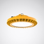 Robuster, runder Hallenstrahler für explosionsgefährdete Bereiche. Geeignet für den Einsatz in Bereichen die im Normalbetrieb gelegentlich durch brennbare Staubwolken explosionsgefährdet sind (Zone 21 / 22). Geeignet für den Einsatz in Bereichen die im Normalbetrieb gelegentlich durch Gase, Dämpfe oder Nebel explosionsgefährdet sind (Zone 1 / 2). ATEX-Kennzeichen II 2G Ex db eb ib mb op is IIC T5 Gb / II 2D Ex tb op is IIIC T95°C Db / -32°C = Ta = +60°C. Für die abgehängte Montage, Ringöse aus rostfreiem Edelstahl im Lieferumfang enthalten. Wand-, Decken-, Mast- und Rohrmontage mittels separat zu bestellendem Zubehör möglich. Mit lambertscher Lichtstärkeverteilung. Leuchtenlichtstrom und Lichtfarbe fest eingestellt. Bemessungslichtstrom 9600 lm, Bemessungsleistung 60 W, maximale Leuchten-Lichtausbeute 160 lm/W. Lichtfarbe , ähnlichste Farbtemperatur (CCT) , allgemeiner Farbwiedergabeindex (CRI) Ra > 80. Farborttoleranz (initial MacAdam) = 3 SDCM. Mittlere Bemessungslebensdauer L80 (tq 25 °C) = 70.000 h. Flimmern: Pst LM = 1,0 bei Volllast. Stroboskop-Effekt: SVM = 0,4 bei Volllast. Leuchtenkörper aus einer kupferfreien Aluminiumlegierung mit witterungs- und korrosionsbeständiger Oberfläche. Oberfläche signalgelb beschichtet (ähnlich RAL 1003). Abdeckscheibe aus gehärtetem Glas. Leuchtendurchmesser 380 mm, Leuchtenhöhe 125 mm. Schutzklasse (EN 61140): I, Schutzart (DIN EN 60529): IP6667, Stoßfestigkeitsgrad nach IEC 62262: IK10. Zulässige Umgebungstemperatur (ta): -32 °C bis 60 °C. Gewicht: 6,5 kg. Eine Anschluss-Verschraubung (PA) ist im Lieferumfang enthalten. Mit elektronischem Betriebsgerät, schaltbar. Das Produkt erfüllt die grundlegenden Anforderungen der anwendbaren EU-Richtlinien und des Produktsicherheitsgesetzes und trägt die CE-Kennzeichnung.