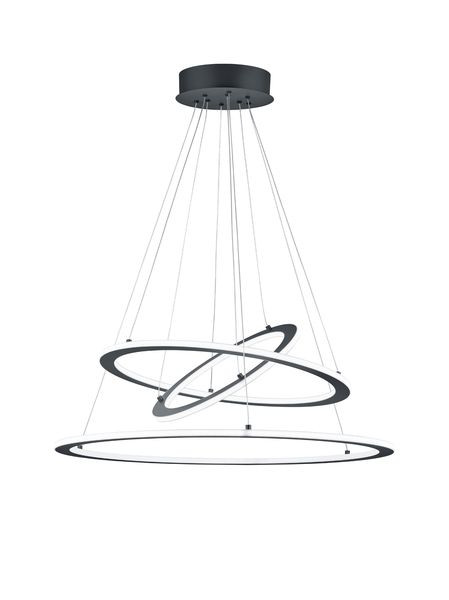 Setzen Sie stilvolle Akzente mit der modernen Pendelleuchte DURBAN. Das elegante Design der Leuchte zieht alle Blicke auf sich und optimiert den modernen Wohnstil. Über den integrierten SWITCH Dimmer können drei verschiedene Helligkeitsstufen mit einem herkömmlichen Lichtschalter ausgewählt werden. Durch die Abstufung der Lichtintensität von 100% auf 50% und 25%, kann die Leuchte verschiedenen Bedürfnissen angepasst werden. Die Pendelleuchte besteht aus drei Ringen, der untere Ring hat einen Durchmesser von 80cm, bei den beiden ineinander hängenden Ringen hat der äußere Ring einen Durchmesser von 60cm und der innere 40cm. Durch die Farbgestaltung Anthrazit, lässt darüber hinaus viel Spielraum bei der Kombination mit vorhandenem Interieur und Farben. Darüber hinaus verfügt die Leuchte über eine moderne LED Technologie, die sich durch eine hohe Lichtqualität und Energieeffizienz auszeichnet. Im Vergleich zu herkömmlichen Halogen Leuchtmitteln lassen sich bis zu 80% der Energiekosten sparen. Zusätzlich haben LED Lichtquellen eine lange Lebensdauer, produzieren weniger Wärme und schonen die Umwelt.