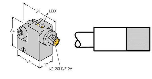 | Kurzbeschreibung | Magnetfeldsensor, für Pneumatikzylinder, quaderförmig, Höhe 34 mm, Metall, GD-Zn, magnet-induktiver Sensor, AC 2-Draht, 20...250 VAC, Schließer, |