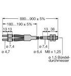 Glas-Lichtleiter, Gabelleiter, Betriebsart: Reflexionslichttaster / -schranke, Edelstahlummantelung, flexibel, Betriebstemperatur Lichtleitermantel: -140…+249 °C, Fühler-Endhülse: Gewinde M8 x 1,25, Lichtleiter-Bündeldurchmesser: 1.6 mm, Gesamtlänge des Lichtleiters: ± 914 mm