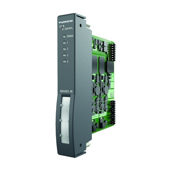 I/O-System excom, 4-Kanal-Eingangsmodul, analog, HART, Eingangsmodul zum Anschluss von passiven und/oder aktiven Transmittern, Allseitige galvanische Trennung , Übertragung von HART-Daten, Pro Kanal ein HART-Kontroller für schnelleren Zugriff auf HART-Daten