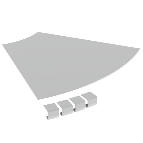 Abdeckung, die ohne Schrauben unter Druck auf die Flachbogen von 90° und 45° mit einem Radius von jeweils R300 mm montiert wird und die Installation vor möglichen Schäden an der Kabelführung schützt. Isolierendes Material. Farbe: Lichtgrau RAL 7035