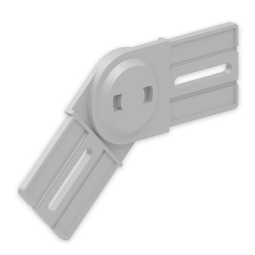 Mit dem vertikalen Gelenkstück kann die Ebene in verschiedenen Winkeln geändert werden. Kann bis zu einer Neigung von +90° und -90° eingesetzt werden. Da es in einem Stück konstruiert ist, erleichtert es die Montage erheblich. Halogenfreies isolierendes Material. Farbe: Lichtgrau RAL 7035