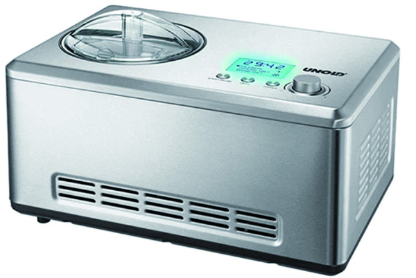 Kompressorbetrieb, robuster Motor, für Dauerbetrieb geeignet, kühlt bis -35° C, Sahneeiscreme in nur ca. 30 Min. (bei vorgekühlten Zutaten), auch zur Herstellung von Frozen Joghurt, Sorbets, etc., Deckelöffnung zum Zufügen von Zutaten bspw. Nüsse, digitaler Timer minutengenau einstellbar von 5 bis 60 Min., LCD-Display mit Anzeige der Restlaufzeit und Temperatur, entnehmbarer eloxierter Eisbehälter, elegantes Edelstahlgehäuse