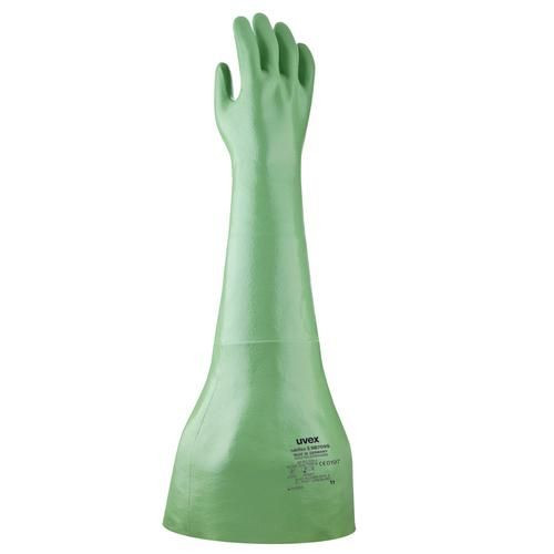 Der rubiflex S NB709S ist ein extra langer Chemieschutzhandschuh speziell für die Festmontage an Sandstrahlmaschinen.