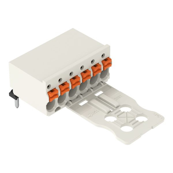 1-Leiter-THT-Federleiste, abgewinkelt; Drücker; Push-in CAGE CLAMP®; 1,5 mm²; Rastermaß 3,5 mm; 7-polig; Lötstift Ø 1,0 mm; Griffplatte; 1,50 mm²; lichtgrau