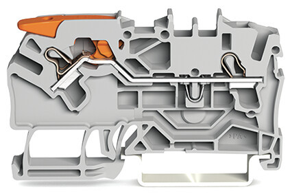2-Leiter-Durchgangsklemme; mit Hebel und Push-in CAGE CLAMP®; 2,5 mm²; mit Prüföffnung; seitliche und mittige Beschriftung; für Tragschiene 35 x 15 und 35 x 7,5; Push-in CAGE CLAMP®; 2,50 mm²; grauDurchgangsklemme Serie 2102, grau