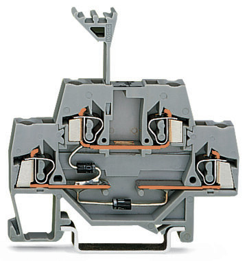 Bauelementklemme; Doppelstock; mit 2 Dioden 1N4007; Anode oben, Anode links; für Tragschiene 35 x 15 und 35 x 7,5; 2,5 mm²; CAGE CLAMP®; grau