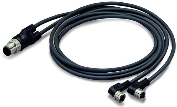 | Kurzbeschreibung | Sensor-/Aktorleitung,2xM8-Buchse, winklig,M12A-Stecker, axial |