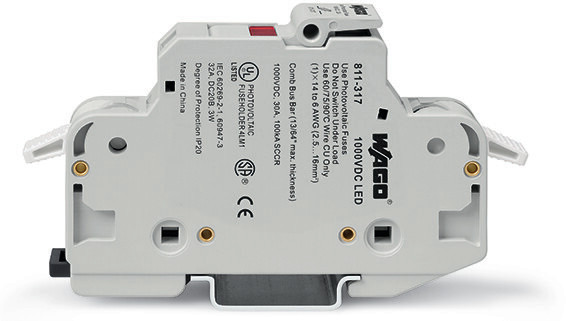 | Kurzbeschreibung | 2-Leiter-Sicherungshalter,für Rundsicherungen 10 x 38 mm, 13/32" x 11/2",für Photovoltaikanwendungen,lichtgrau |
