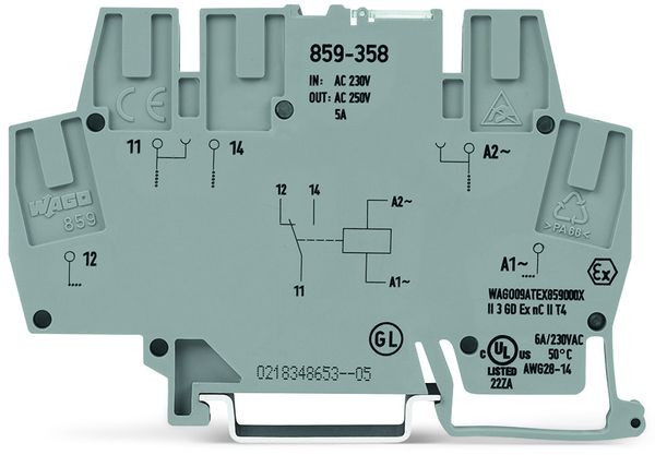| Kurzbeschreibung | Relaismodul,Eingangsnennspannung AC/DC 230 V,1 Wechsler,grau |