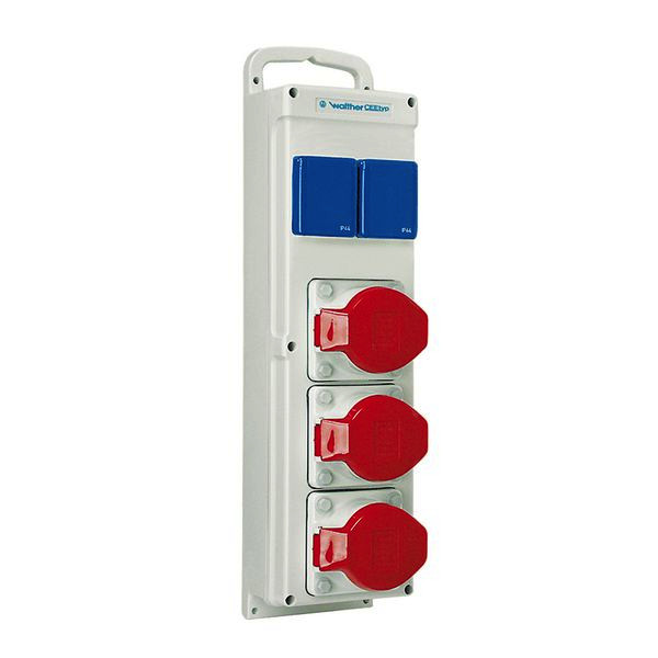 | Kurzbeschreibung | Tragbare Kunststoff-Steckdosenleiste In: 16A mit 3 CEE-Abgänge 16A, 2 Schukos und Anschluss bis 6qmm 5P |