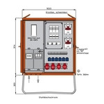 | Kurzbeschreibung | Anschlussverteilerschrank bis 69kVA mit Zählerplatz, 3 RCDs Typ B, 10 LS, 6 CEE-Abgänge 16-63A und 6 Schukos |