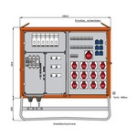 | Kurzbeschreibung | Verteilerschrank für Container 138kVA mit 5 RCDs Typ B und RCD Typ A, 18 LS, 12 CEE-Abgänge 32A und 6 Schukos |
