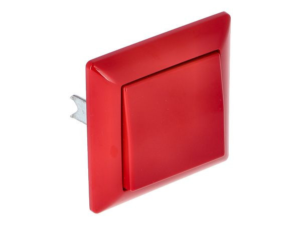 optionaler Hochtaster bestehend aus:Taster mit Federklemmen AbdeckrahmenTasterwippeAbdeckrahmen und Tasterwippe aus bruchsicherem, glänzendem KunststoffFarbe rot (RAL 3003)
