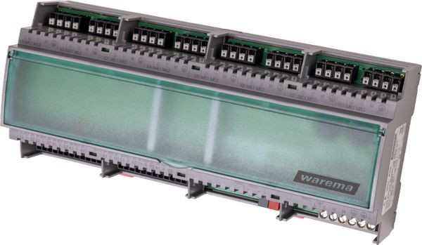KNX Secure zertifiziertindividuelle Ansteuerung und Parametrierung von 8 Ausgangskanälenwechselbare Feinsicherung zum LeitungsschutzDrehrichtungsumkehr per ETS programmierbarbis zu 16 integrierte Binäreingänge (z. B. Schalten, Dimmen, Jalousie, Szenentaster, freie Zustands-/Flankenauswertung)umfangreiche Status-Objekteumfangreiche Automatisierungsfunktionalitäten, z. B. integrierte Sonnenstandberechnung, Lamellennachführung, Heizunterstützung, Präsenz und SicherheitsfunktionenPrioritäten der einzelnen Funktionen frei parametrierbarEinschränkung der manuellen Bedienung (z. B. Cut-Off Begrenzung)frei verwendbare Logik- und Timer-FunktionenGrenzwerte und Messwerte sind via ETS Parameter und Gruppenobjekt einstellbareinfache Verknüpfung von WAREMA KNX Geräten durch zusätzliches 3 Byte ObjektVorwahl Ausgangstyp für unterschiedliche Sonnenschutzprodukte mit voreingestellten Grundparameternspezielle Einstellungen für ZIP-Markisen mit reagibler Hinderniserkennunghöchste Präzision in der Positionierung durch umfangreiche Einstellmöglichkeiten von MotoreigenschaftenFirmware-Update per KNXUnterstützung der Inbetriebnahme durch KNX Aktoren App für Smartphone (Bluetooth)schnelle Inbetriebnahme und höhere Funktionssicherheit durch automatische Laufzeiterkennungintegrierte Laufzeitanpassung gleicht alterungsbedingte Laufzeitdifferenzen ausÜberwachung des Motorstroms und der Laufzeit mit Fehlerausgabe über Störmeldungsobjekt (Standard-Motor)