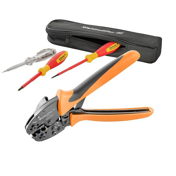 Werkzeugtasche zum Transport von Crimpwerkzeugen für Kabelschuhe,Verbinder und Aderendhülsen mit Wechseleinsätzen.