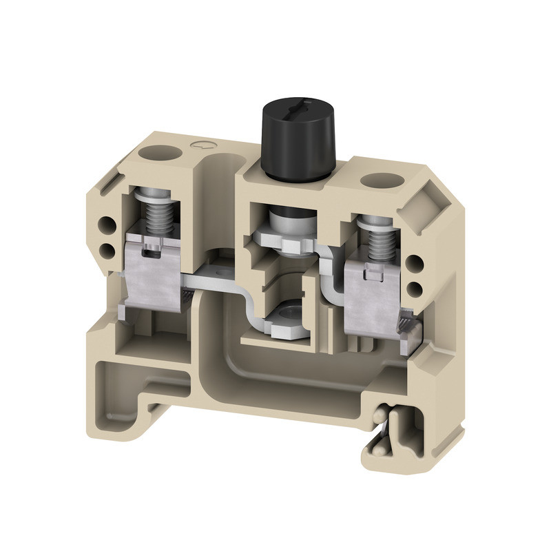 Reihenklemme zum Anschließen oder Verbinden von Leitern mit dauerhaft sicherem Kontakt. Gehärteter Stahl hält den mechanischen Kräften stand, Zinn-beschichtetes Kupfer sorgt für beste Leitfähigkeit. Mit herausnehmbarem Träger für einen Sicherungseinsatz.