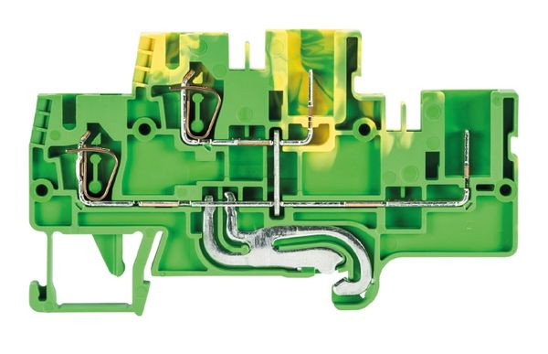 Schutzleiterklemme mit Federkraftanschluss für die Montage auf TS 35, Nennquerschnitt: 2.5 mm², Baubreite: 5 mm, Farbe: grün-gelb