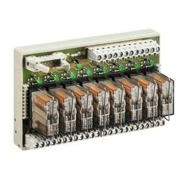 Relaisausgabemodule, 8-fach, mit Schraubanschlüssen und Flachbandstiftleiste 10-polig, Kontaktbelegung: 1 Wechsler, Relais steckbar, plusschaltend, Eingangsspannung: 24 V DC + 10 % / - 15 %, Ausgangsspannung: 250 V AC/5 A