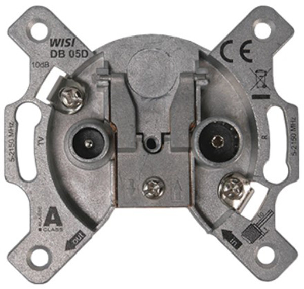 Universal 2-Loch Durchgangsdose mit breitbandigem Frequenzbereich von 5…2150 MHz. Somit kann die DB 05D Antennendose sowohl in BK-Applikationen inklusive Rückkanal als auch bei SAT- Einkabellösungen ohne Schaltspannungen genutzt werden. Zum Anschluss der Endgeräte stehen 2 IEC-Anschlüsse zur Verfügung. Die hohe Entkopplung der Teilnehmerausgänge stellt den einwandfreien Betrieb der angeschlossenen Endgeräte sicher. Das Schirmungsmaß der Klasse A wird erreicht.
