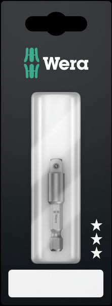 Werkzeugschaft für handbetätigte Steckschlüsseleinsätze. Mit Kugel. Abtrieb: 1/4"-Außenvierkant; 1/2"-Außenvierkant. Antrieb: 1/4"-Sechskant.
