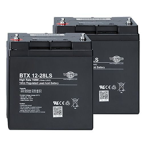 2 Stück Blockbatterien, Verschlossene, wieder-aufladbare extrem gasungsarme High Rate (Blei/Kalzium in Glasfaser-Vliestechnik) OGiV Batterien 12 V / 28 Ah mit einem Design Life von 12 Jahren bei 20°C, entsprechend der EUROBAT-Klasse: High Performance. Abmessungen: 166 x 125 x 175 mm (L/B/H), Gewicht: 9 kg pro Stück, Polanschluss: M5 Drehmoment 5-7 Nm mit Faston F2 Adapter Merkmale nBox ACCU SET PB 2 Stück 12V/28Ah - OGiV High Rate Gitterplatten (Blei/Kalzium) - Entsprechen der EUROBAT Klasse high Performance - Brauchbarkeitsdauer 12 Jahre @ 20°C Umgebungstemperatur - Gehäuse und Deckel ABS - Extrem gasungsarm, verschlossene Bauart - Niedrige Selbstentladung - Keine Transportbeschränkungen - 100% recyclebar - Wartungsfrei über die gesamte Brauchbarkeitsdauer - Nominalspannung 2x12 V / 24 V DC - Entsprechen DIN EN 60896 - Lüftung nach EN IEC 62485-2:2018 Zusätzliche Info: Der Batteriesatz darf nicht länger als 2 Monate nach Auslieferung ohne Batterieladung gelagert werden. Spätestens nach 2 Monaten muss der Batteriesatz an die Anlage angeschlossen werden. Bei nicht einhalten dieser Anweisungen wird jegliche Haftung respektive Garantieansprüche abgelehnt.