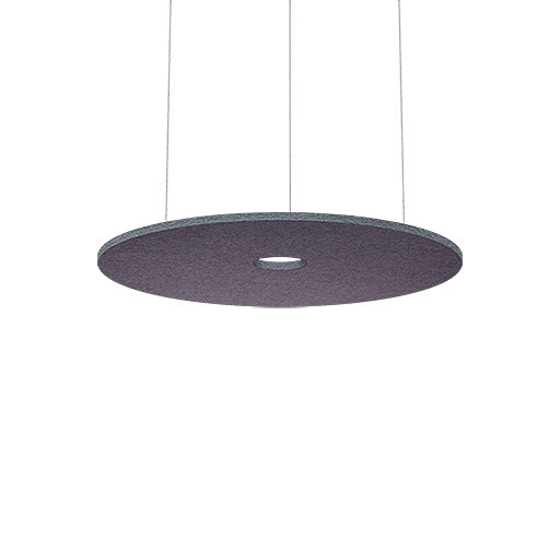 Akustisch wirksames Zubehör, in welches eine Standard PANOS III Akustik Zubehör mit Deckenring montiert werden kann. Geeignet für die Absorption von Direktschall von unten, wie auch von Wänden und Decken reflektiertem Schall. Das Akustik Zubehör ist aus hochwertigem, flammenhemmenden (C-s2-d0) Formvlies aus PET (30% Rezyklatanteil) in den Farben: Grundmaterial: anthrazit fleece, Farbschicht: Lavender, Offene Kanten um noch bessere Absorptionsgrade zu erzielen. Pendelmontage mit drei Befestigungspunkten, Befestigungsset mit Drahtseil 2m, höhenverstellbar, bereists vormontierte eingesenkte Gewindehülsen. Abmessungen: Durchmesser 1000 x 25 mm, Gewicht: 2,84 kg