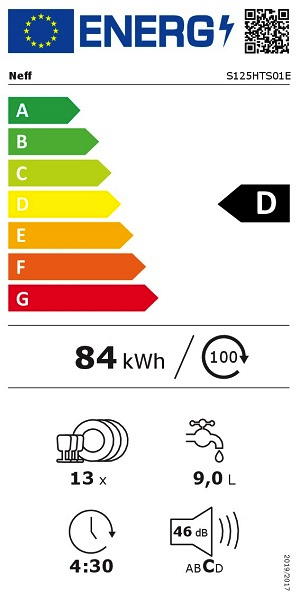 | Energieeffizienzklasse Geschirrspüler (2019/2017/EU) | D |